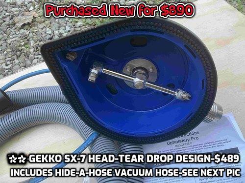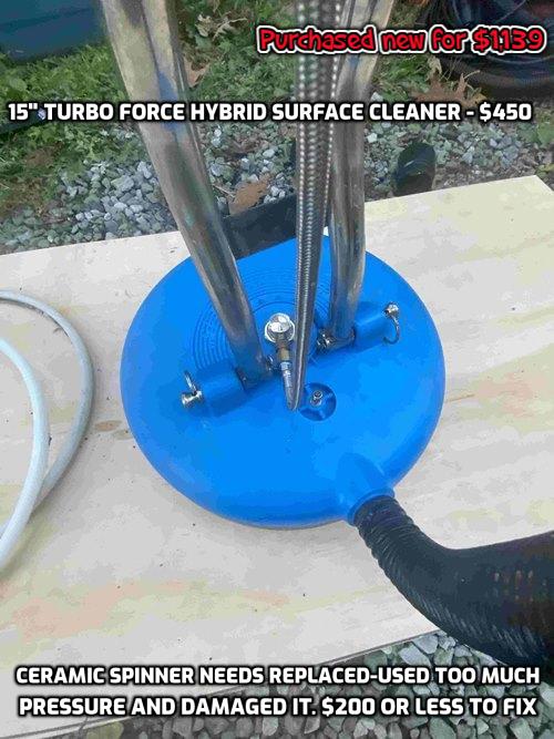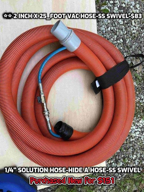 Mytee Flood Hog and Turbo Hybrid, along with one vacuum hose and supply hoses, have been used less than 25 hours. Everything else is brand new. Prices are listed on the pictures. I have the orignial invoices if you want to see them. Turbo Hybrid needs a new seal/bearing unit. This is less than $200. I ruined it by running too much pressure through it. Also replaced the stainless steel line running from the trigger to the spinner, so that's new.