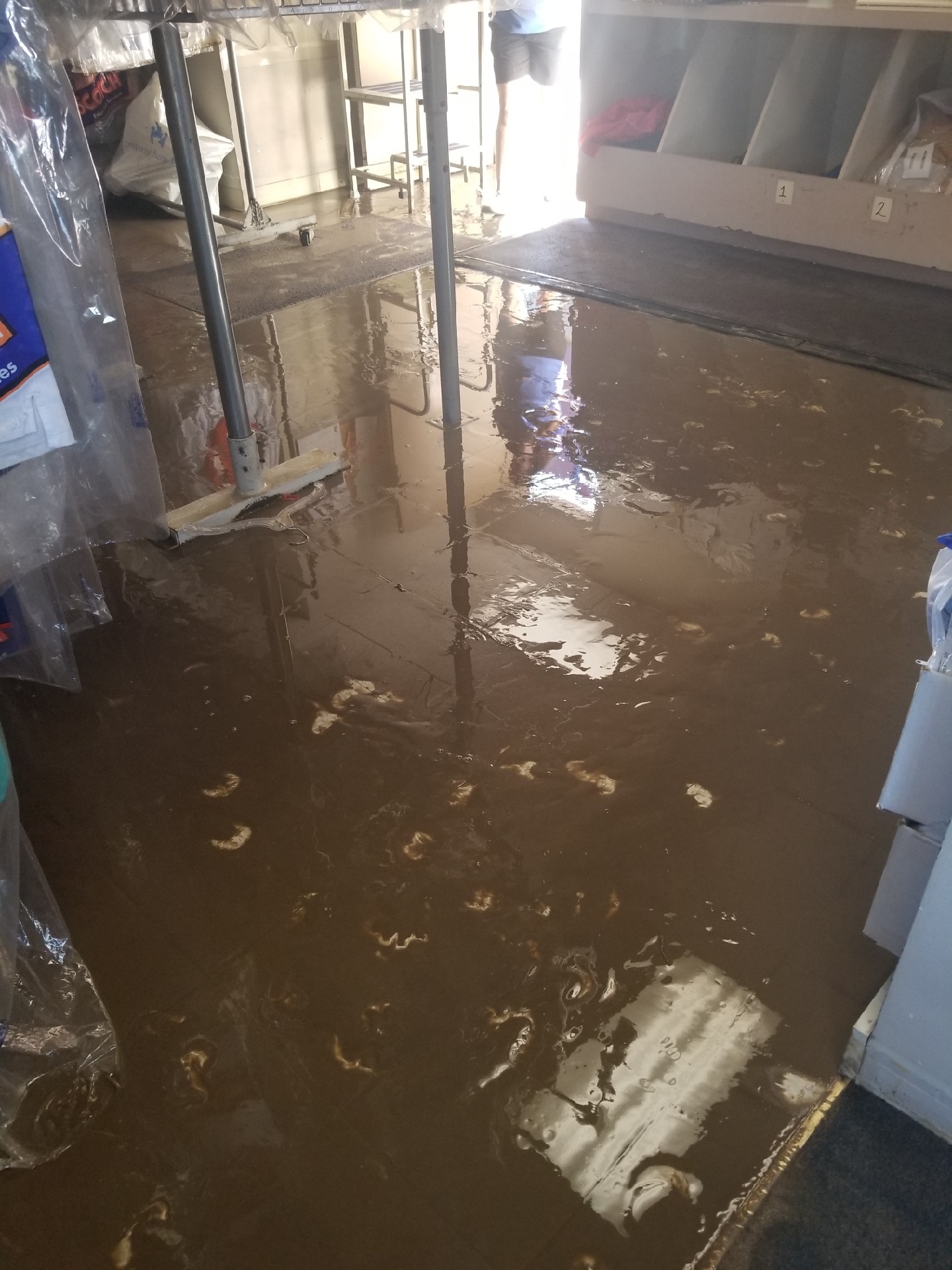 Water main break at a Drycleaners pickup store.