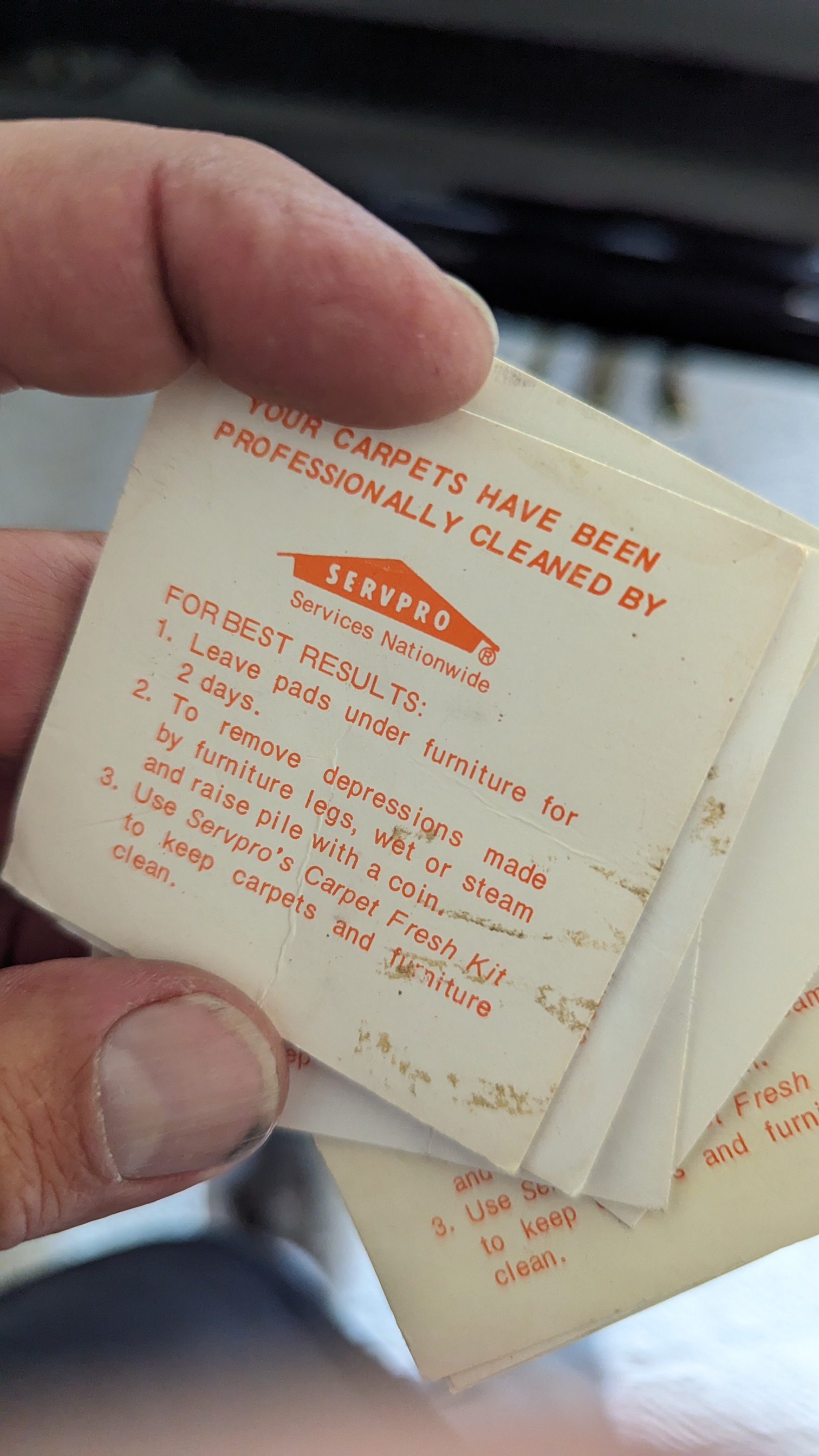 She didn't know but bought the house in 04I haven’t known a Servpro to do residential cleaning for ages. How long were those tabs there?