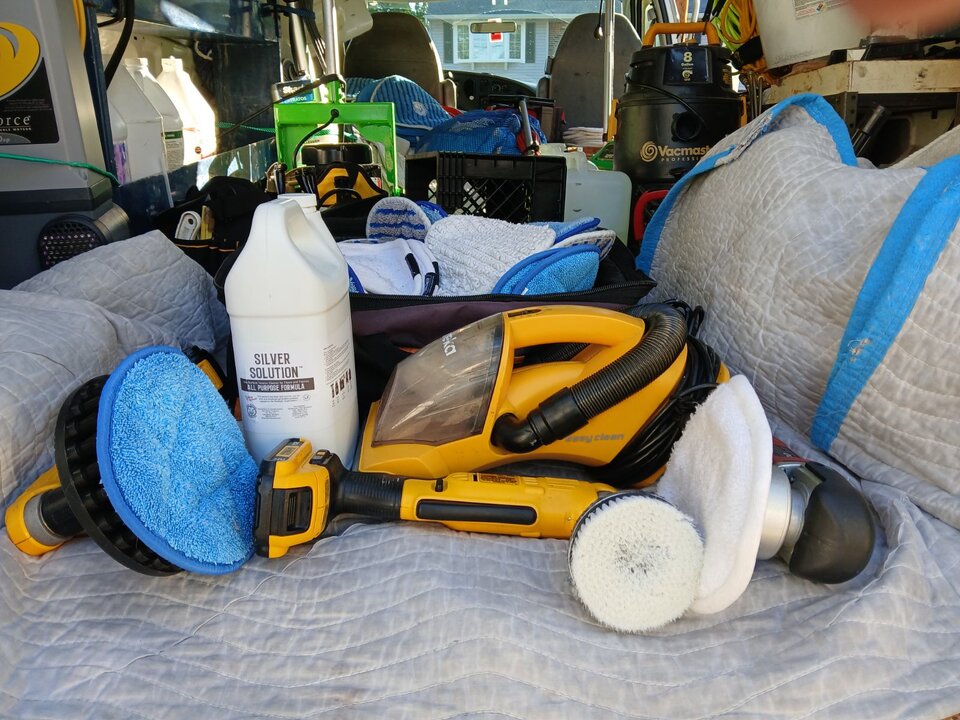 If it doesn't I use a Shark Hand Held vacuum for anything Kirby doesn't get. It has a lot of suction for a little vacuum and it fits right in my spotter bag. The nozzle end comes off and makes it shorter