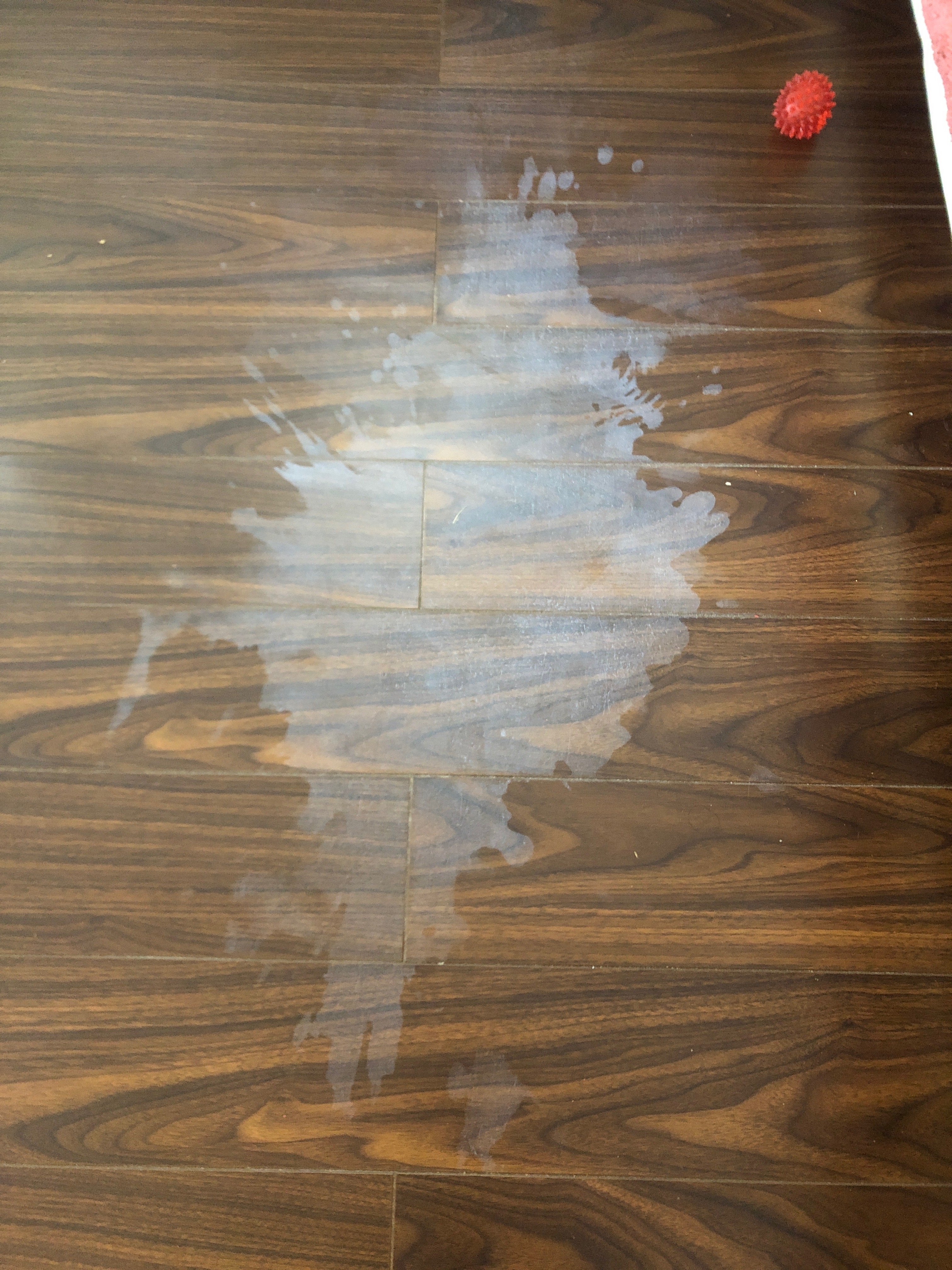 That's what your carpet cleaning detergent looks like if you spill on a hard surface. Might just need to be cleaned off of the surface.
