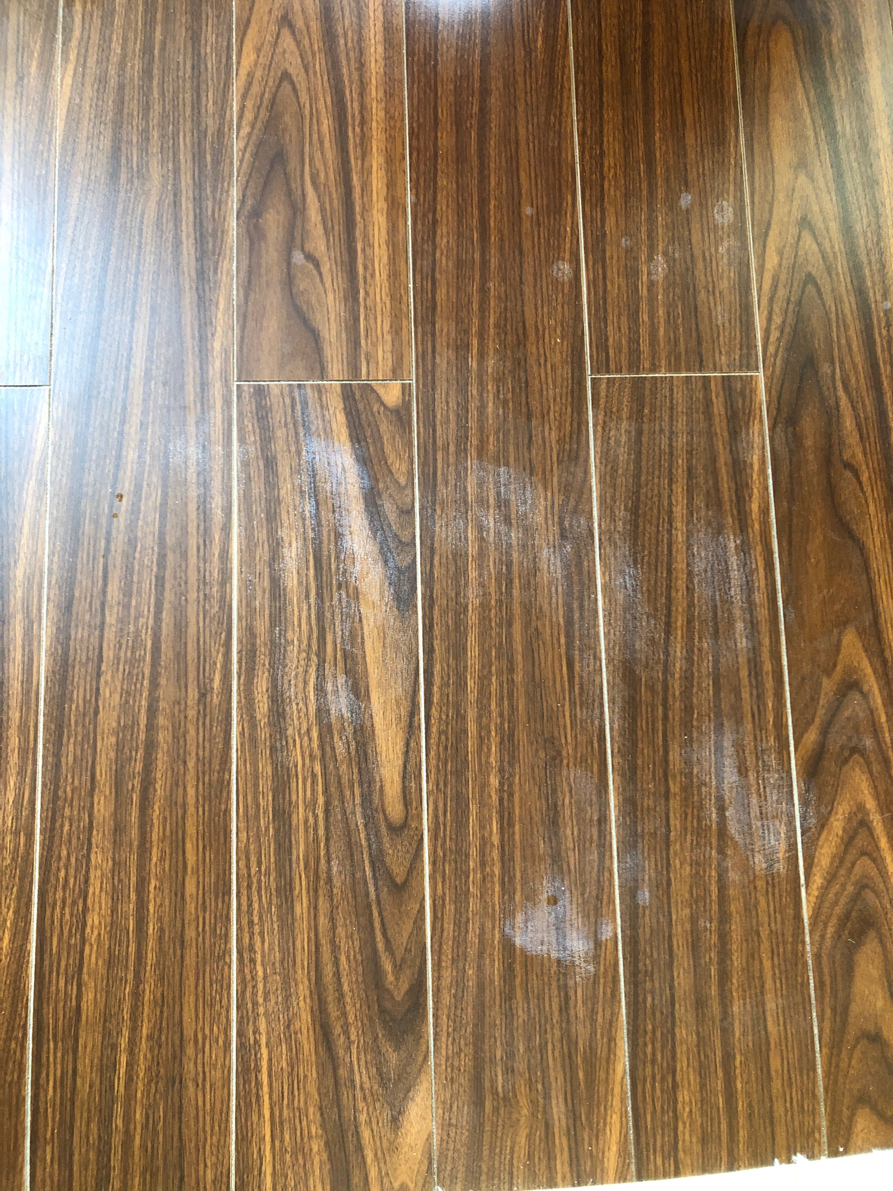 If 3 did not help, you have a chemical burn of the original finish. Consult with a local flooring store to see what replacement would cost and add a percentage to that fee for your time. Then, let them do the work.