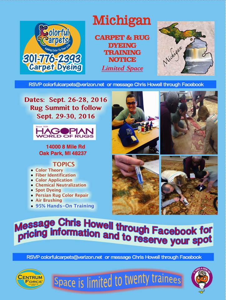Come join us for our color repair class at the Rug Summit X at Hogopian Rugs in Michigan. September 26-28. Course content listed in flyer below.