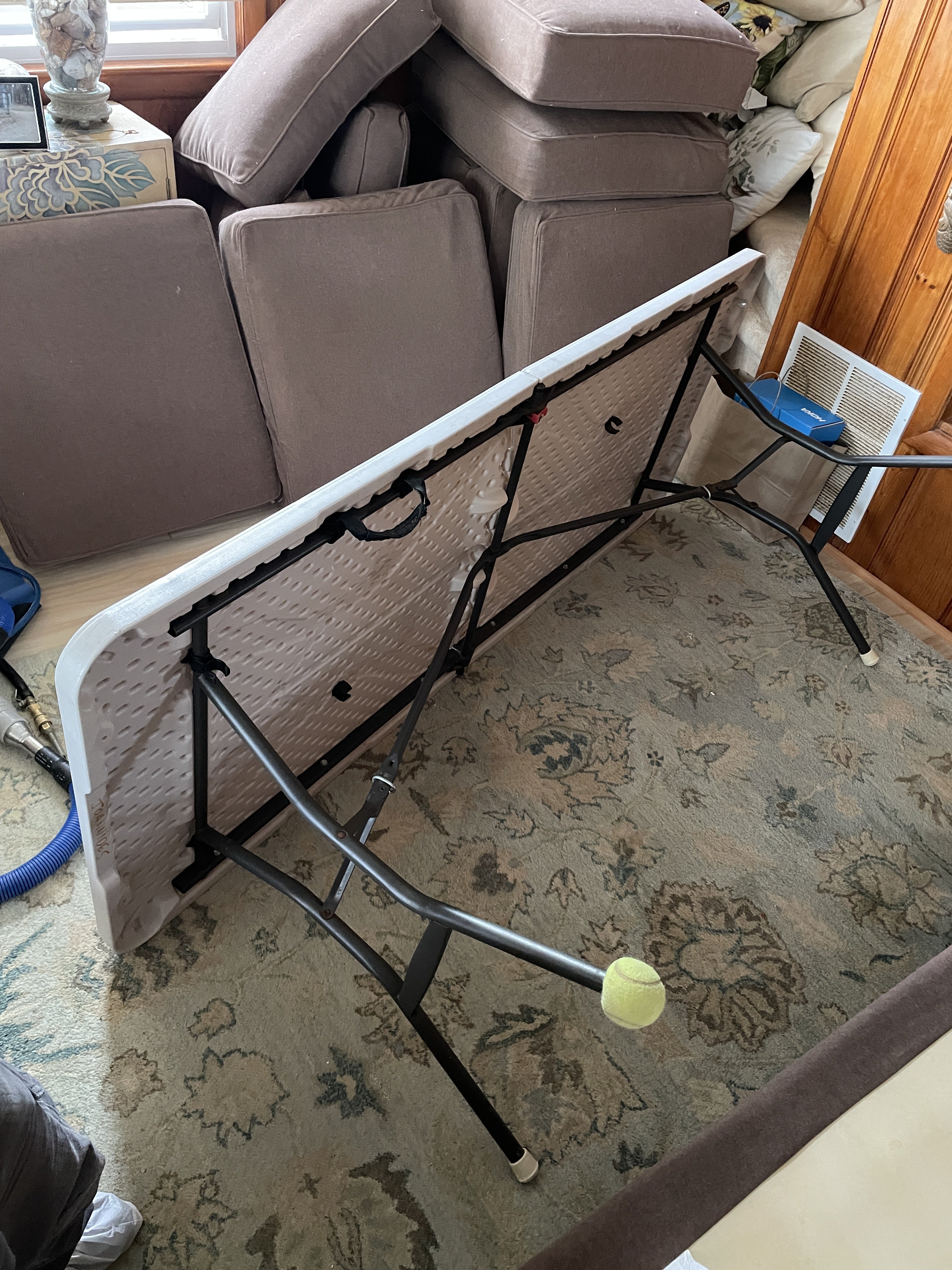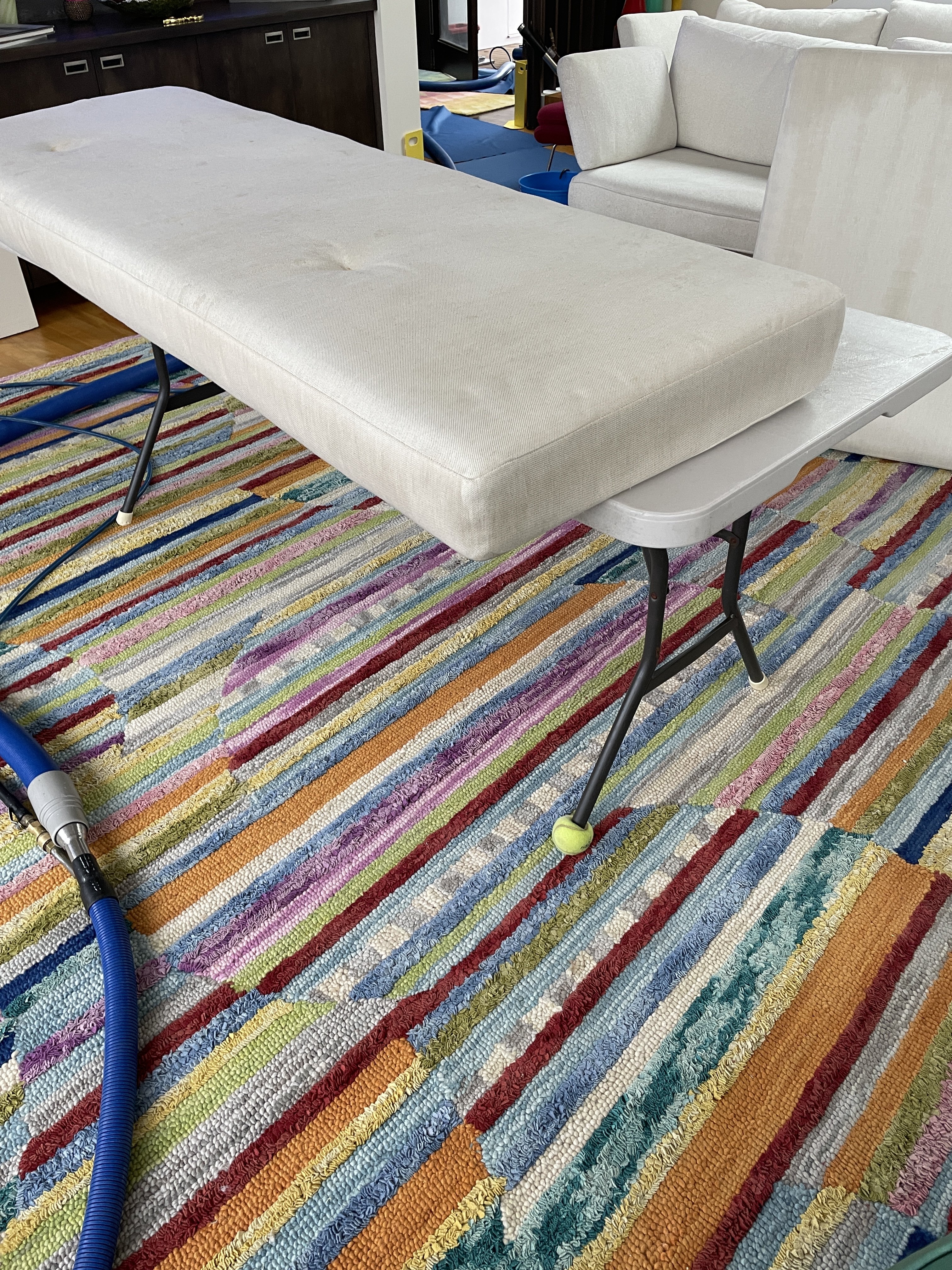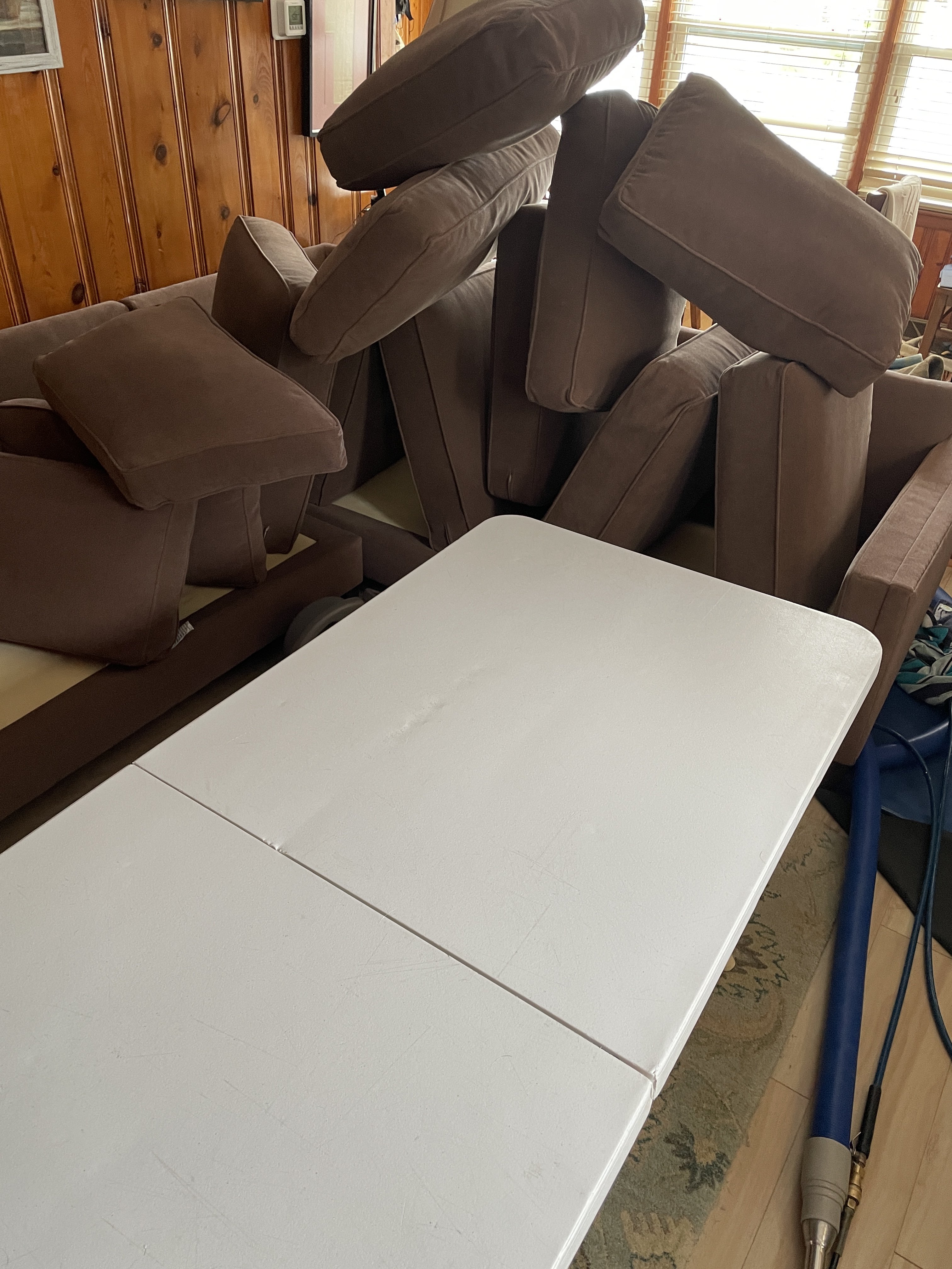 jonDon use to sell the fold up āwaitersā tray type upholstery cushion table. they stopped selling them years ago. I still have mine. Saves from bending.We use an upholstery table on most days.