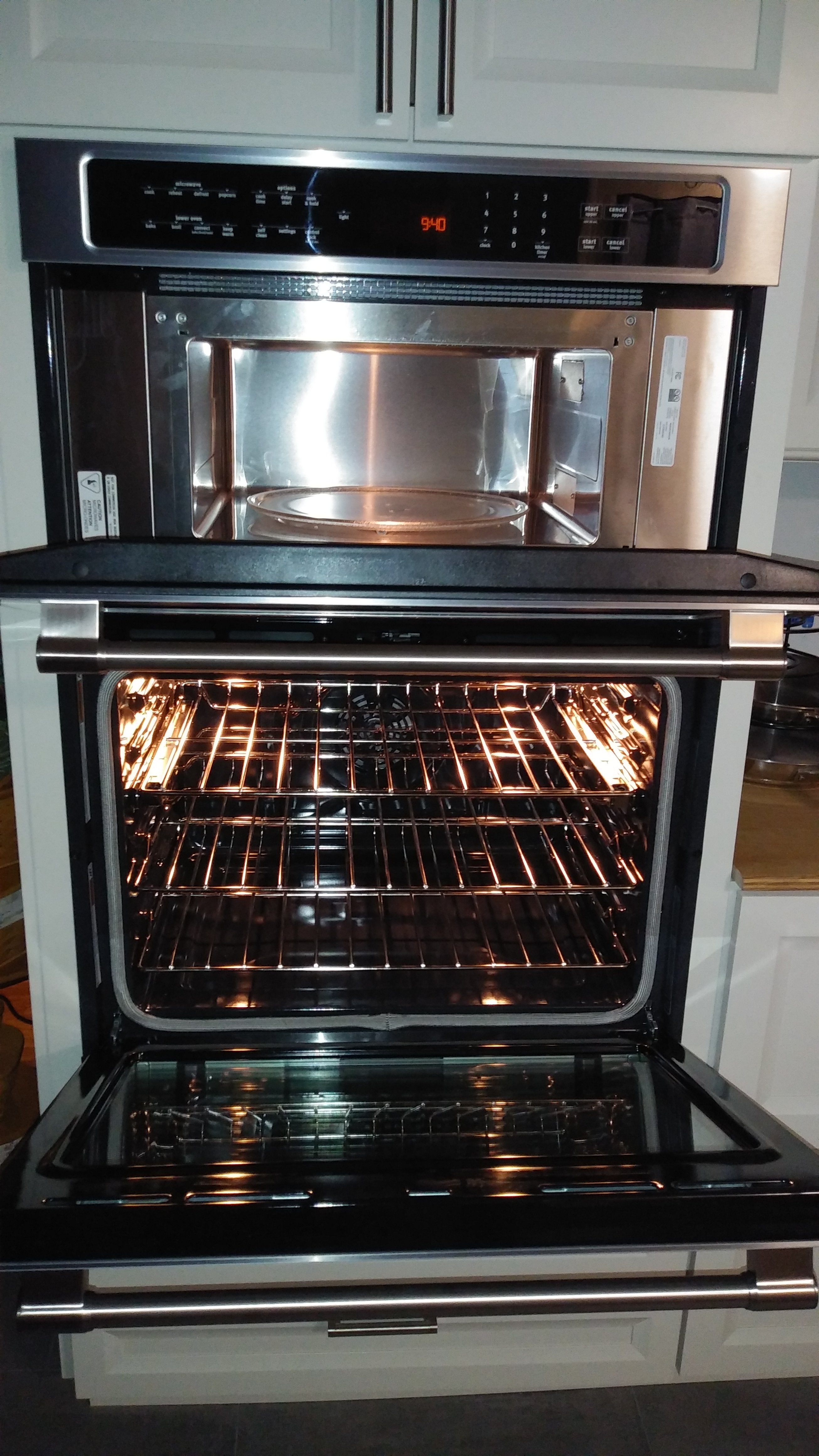 It's electric and that's a microwave on top. We went with this cabinet for the two drawers underneath. But we had to cut the cabinet opening to fit this oven microwave combo.