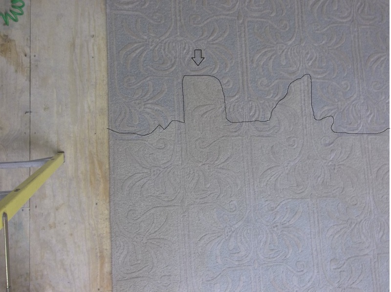 I think the problem is when different skeins of fiber were changed over from the tufting gun, some of the yarn was defective and discolored. But I don't know how tufting guns follow the patterns and if it's possible to leave this discolored pattern.