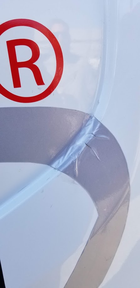 We asked Jeff to send someone over to remove all the vinyl and told him we would have another company redo it. Somebody at **** decided that the sides looked "OK" so they only removed the back artwork. The sides are not "OK", vinyl is peeling away and they made a mistake on the artwork (that they created in 2001) and say that because I signed off on it, they are not responsible for mistakes) A detail like this is only obvious once it's blown up to five feet tall, not in a jpeg.