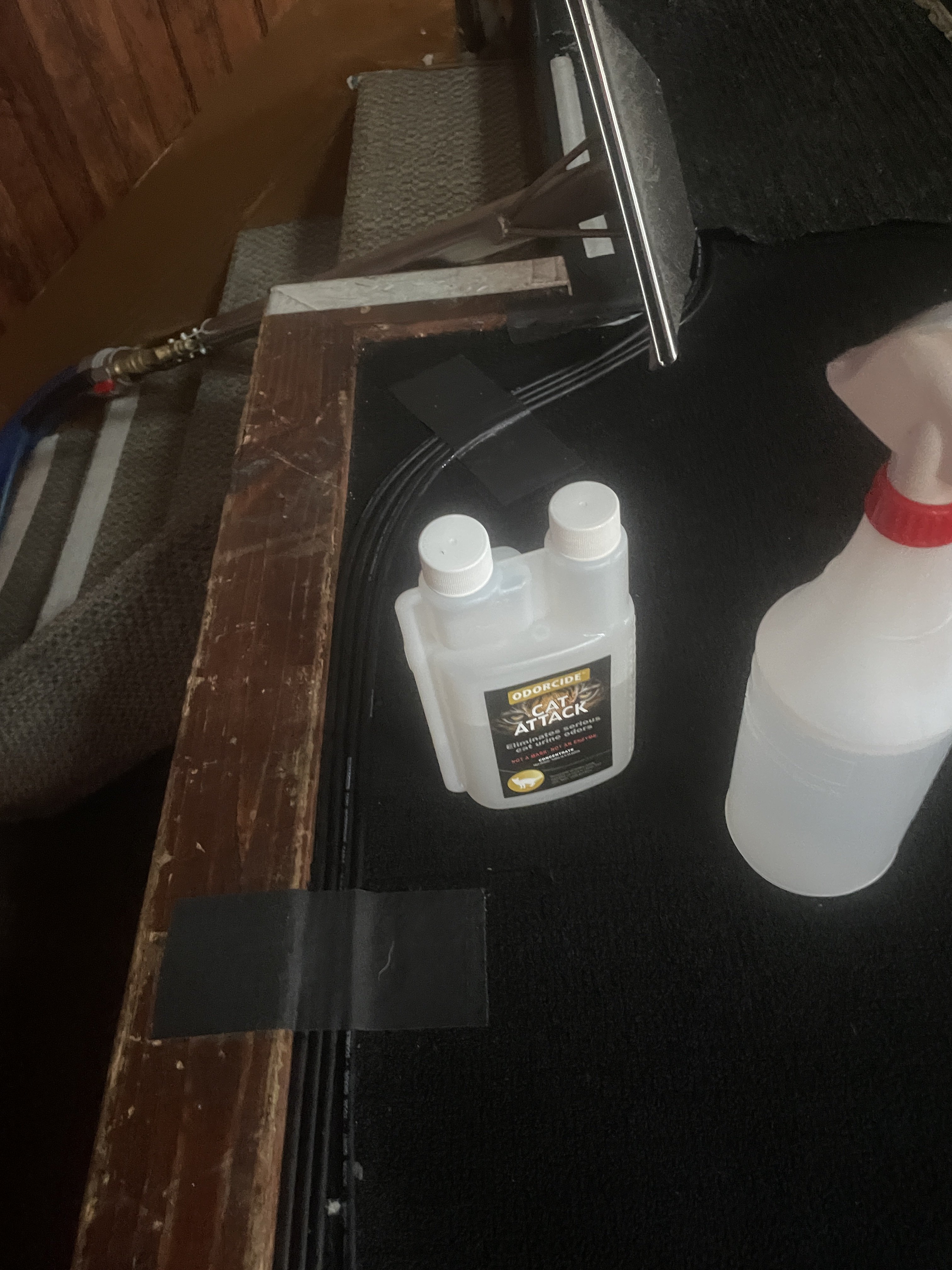That works too, but depending on the situation, getting the product under the padding and to the subfloor immediately seems to help. Often, I'll inject then spray heavy on top.What the heck? Just spray heavy and stomp it with your foot.