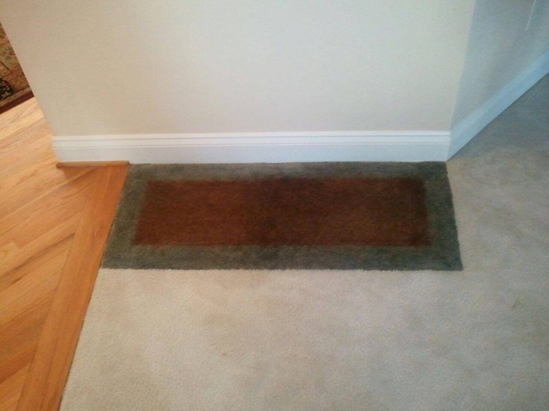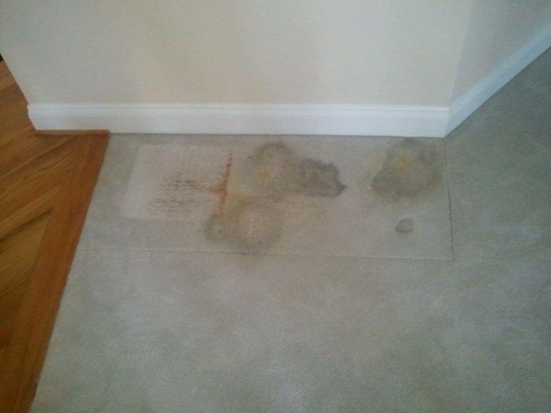 So what do you do when you have a customer who has furniture dye transfer stains, rust stains, and bleach spots on the carpet under where they keep their aquarium? You dye a small area rug into the carpet. That's what you do!