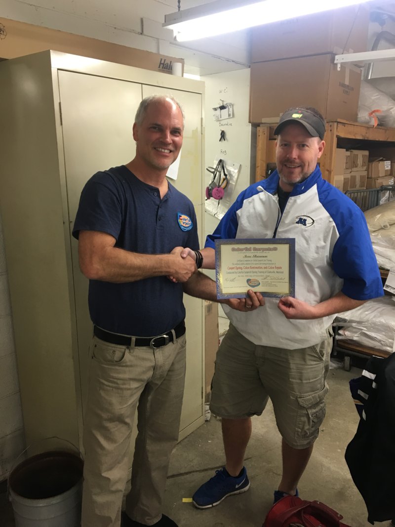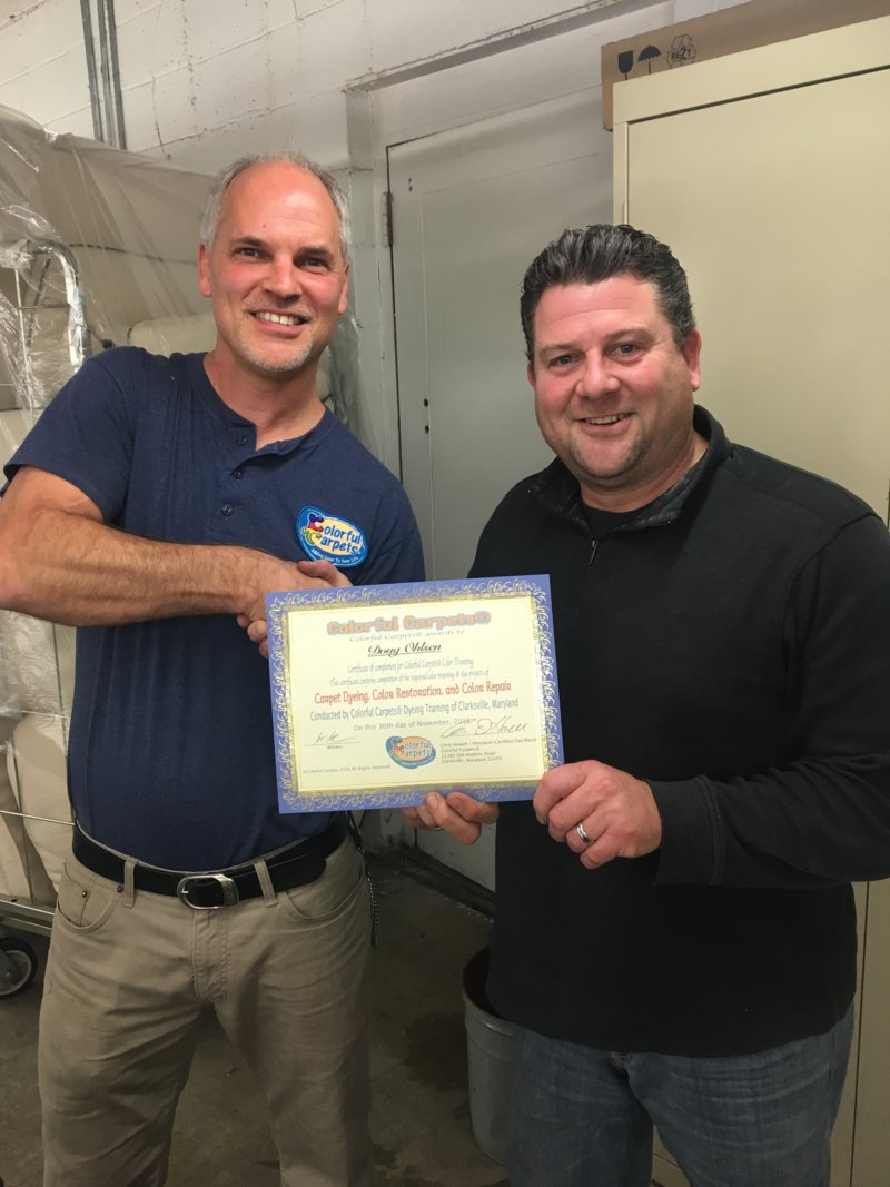 We can confirm doing large areas come out evenly. John and a few other trainees helped on a job in D.C. at the Peace Center a couple of months ago. It was a full dye large project that occurred over several days. John and others went down to lend a hand and get more experience doing this type of work. In addition to the Dye Lot Facebook page, and the color cue app these are the kind of opportunities Chris has available to his graduates who want to continue to hone their skill.