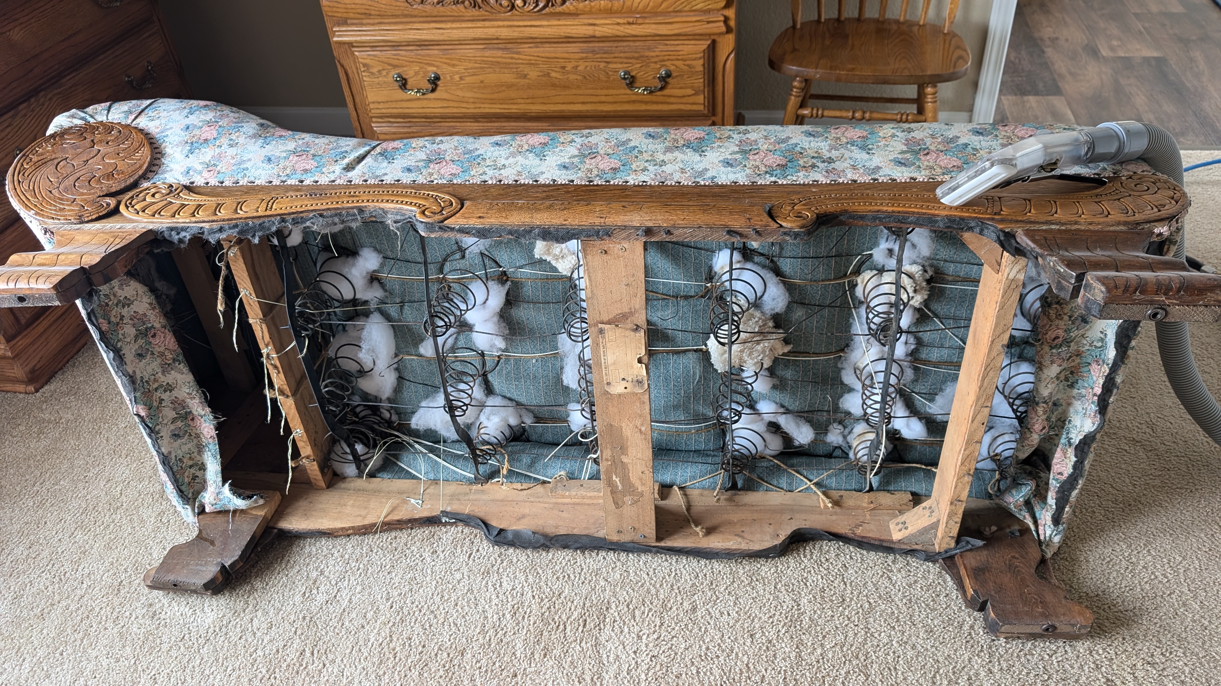 I quoted this lady 480 to clean this "fainting" settee and a few more modern pieces..