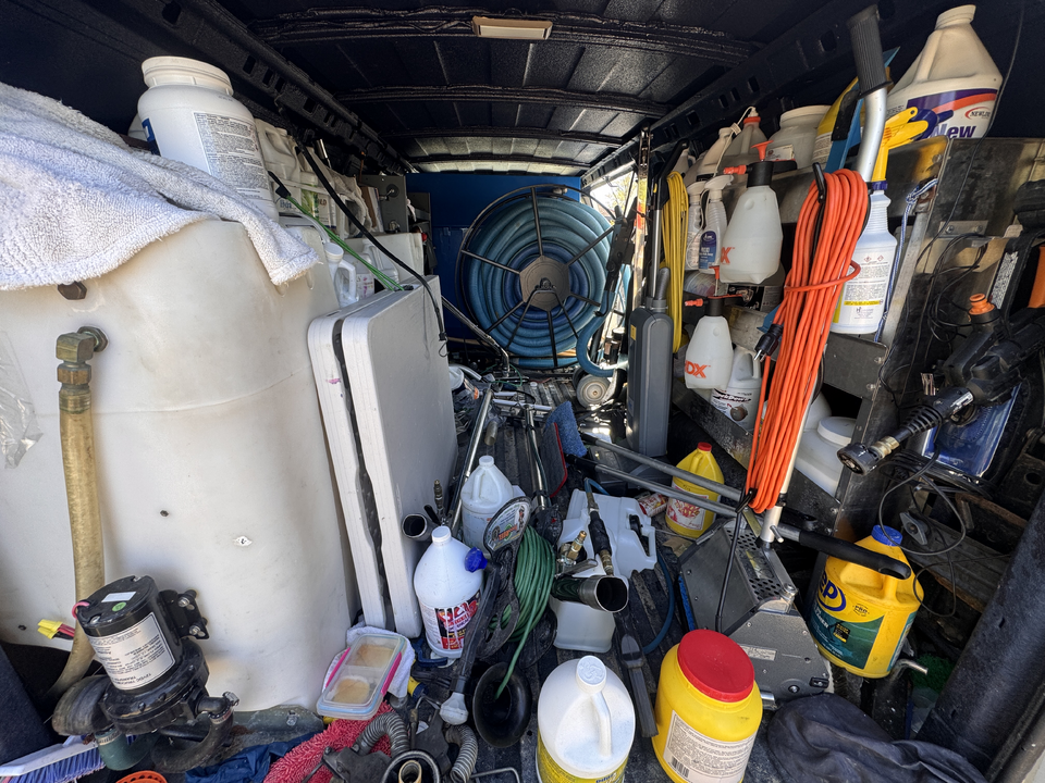 But on serious note…it’s stupid to put a big water tank in a little express van when they hook up to the client’s water 90% of all jobs anyway. So pull out that big anchor and have some extra room