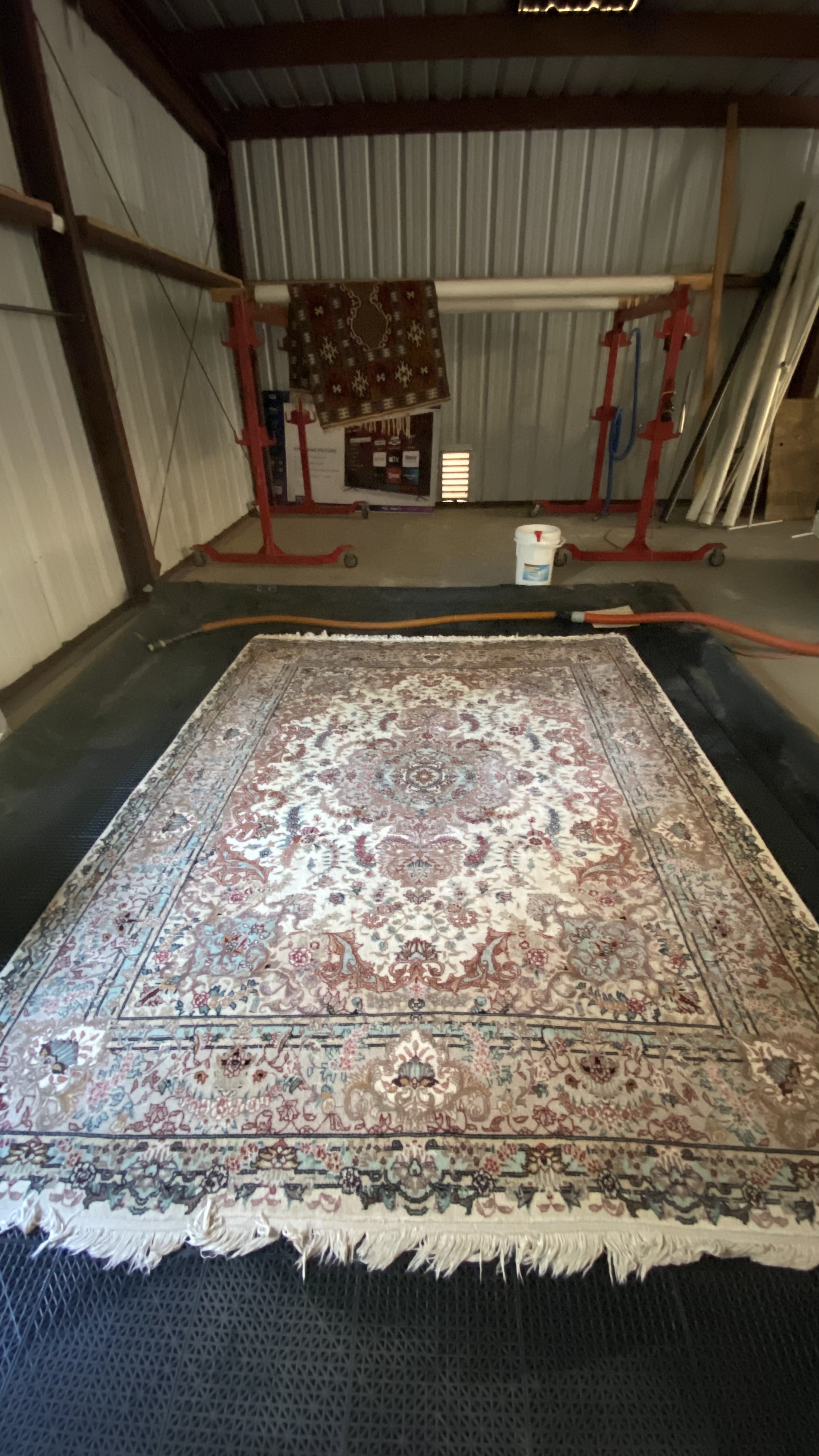 I’m going to try some white vinegar. Just got done hand washing a Kilim rug and now working on a big wool rug.