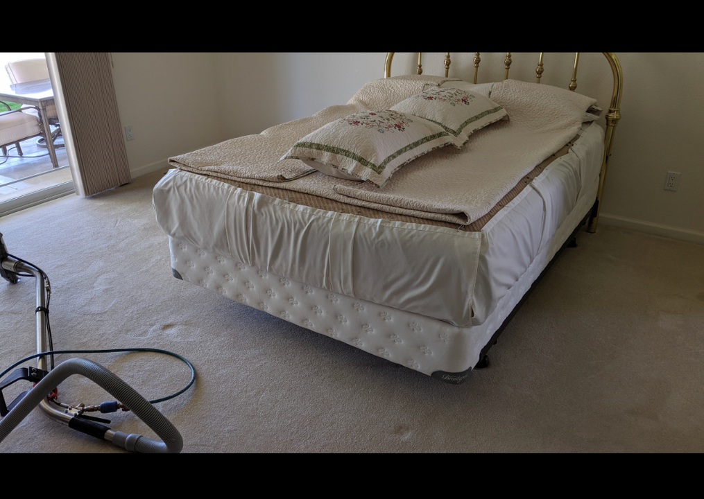 Exactly the situation i built the raised sliders with wheel cups. They allow me to move that bed with little effort they will raise the inner support leg(if any) and head board approximately ½" off the carpet and the cups will prevent the wheels from rolling off the sliders