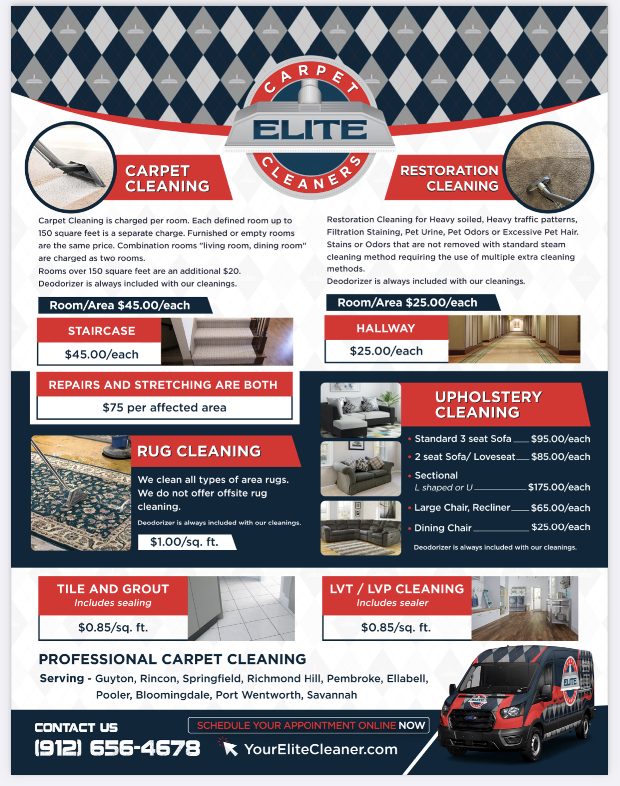What do you guys in the south charge for about 120 Sq ft of carpet, liner foot of furniture, Sq ft for rugs and per stair?