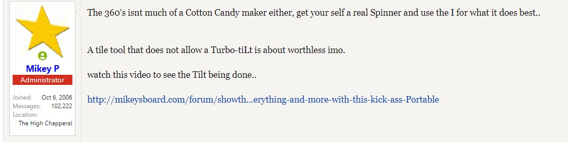 Im not bagging on spinner tools here, I'm bagging on the "Mark Markovitz" generation of lazy cleaners who wont use TACT to clean floors. The guys who always treat floors as if they were in a chinese restaurant with pH15 "2790 Oxy Master Blaster" and 1500-2500 psi, all so that they can avoid the Time and Agitation element to the professional process...