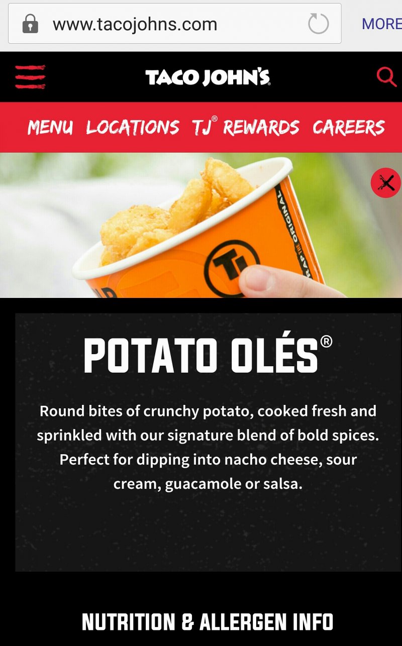 Desk Jockey said: View attachment 70981 Taco John's serves "Potato Rounds". Click to expand... That's just not fair. Now I'm craving potato ole's.