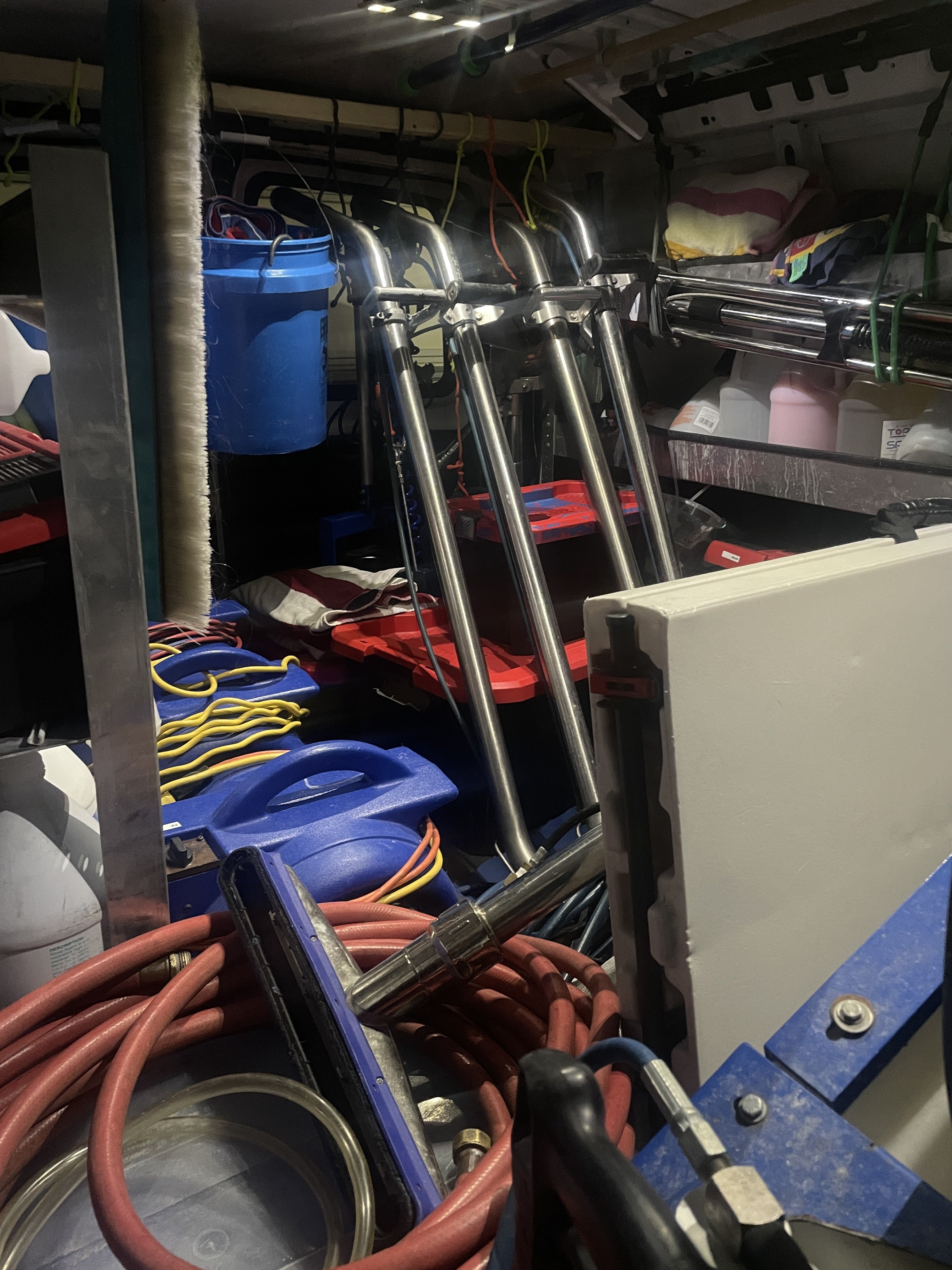 There are two 2”x12 Devastators, one SS 14, a 15” zipper, turbo hybrid and a ss upholstery. The zipper, turbo hybrid and upholstery pro are between the hose reel and the TM.Or Devastator![]()