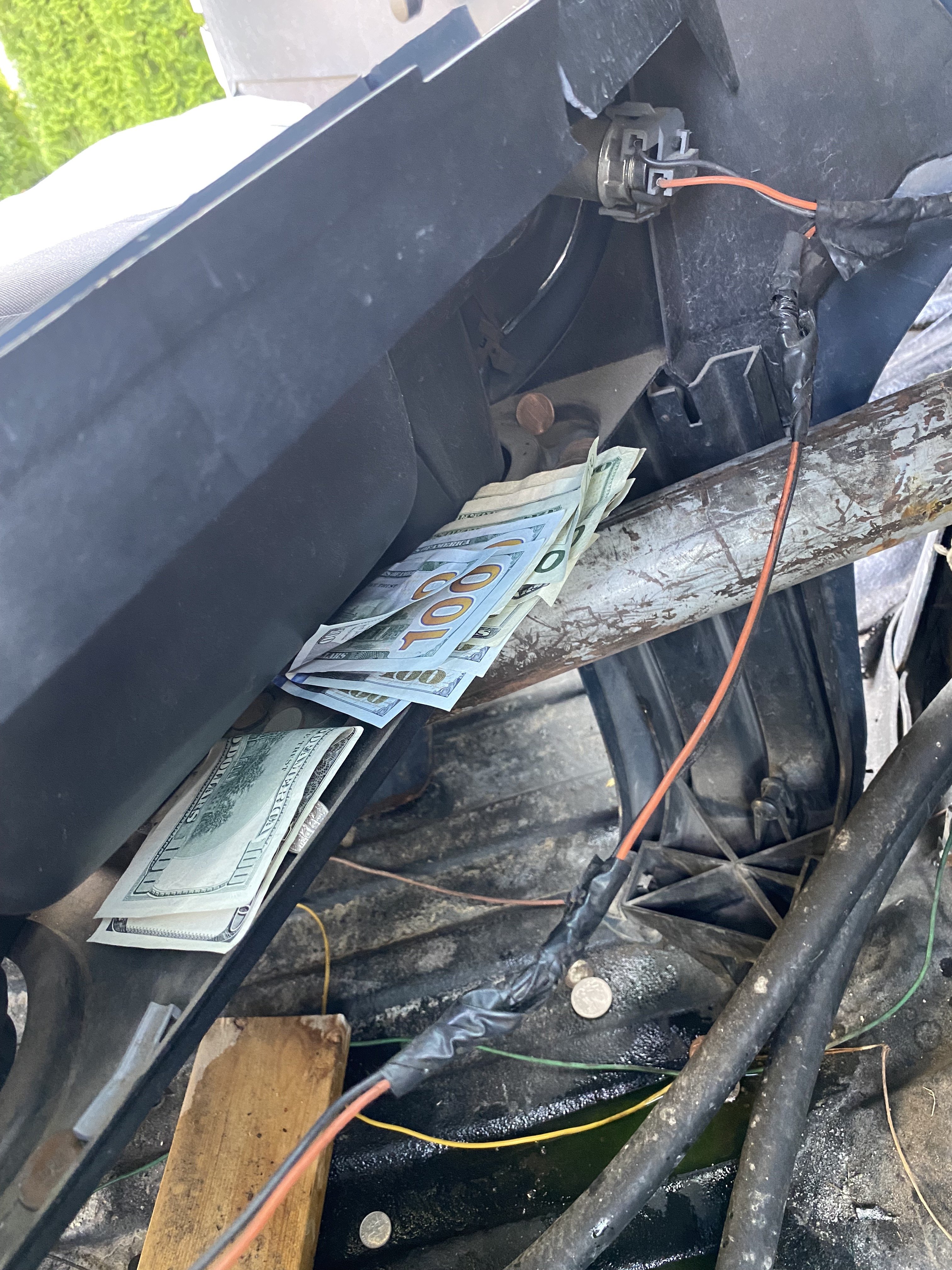 The most money I found in a car was $2k.. It was under the spare tire in a car I bought.. It took getting a flat to find it..