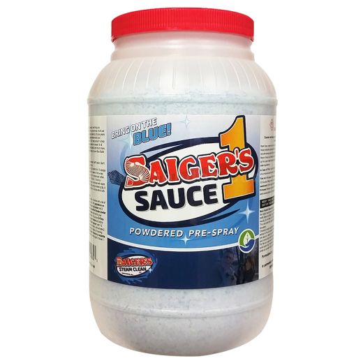 Saiger's Sauce is a high-performing pre-spray designed to be your "Blue Bullet" for all your carpet cleaning jobs. It's strong enough to power through greasy commercial jobs in restaurants, hotels, and retail stores, but it’s also gentle enough for routine cleaning of lightly soiled residential carpet. Whether you’re cleaning a filthy rental property or a high-end residence, Saiger’s Sauce 1 is your #1 go-to product. It even works on the most stubborn, stuck-on grease and grime on tile and grout, synthetic rugs, garage floors, and stone patios. It rinses easily and completely and won't leave behind unsightly white powder on grout lines. This non-toxic, enviro-safe formula contains no d-limonene, no butyls, no solvents, no oxidizers, and no NTA. It has a pleasant fresh lemon scent that fights odors and lingers after the cleaning is complete, leaving a positive, fresh-smelling impression on your customers.