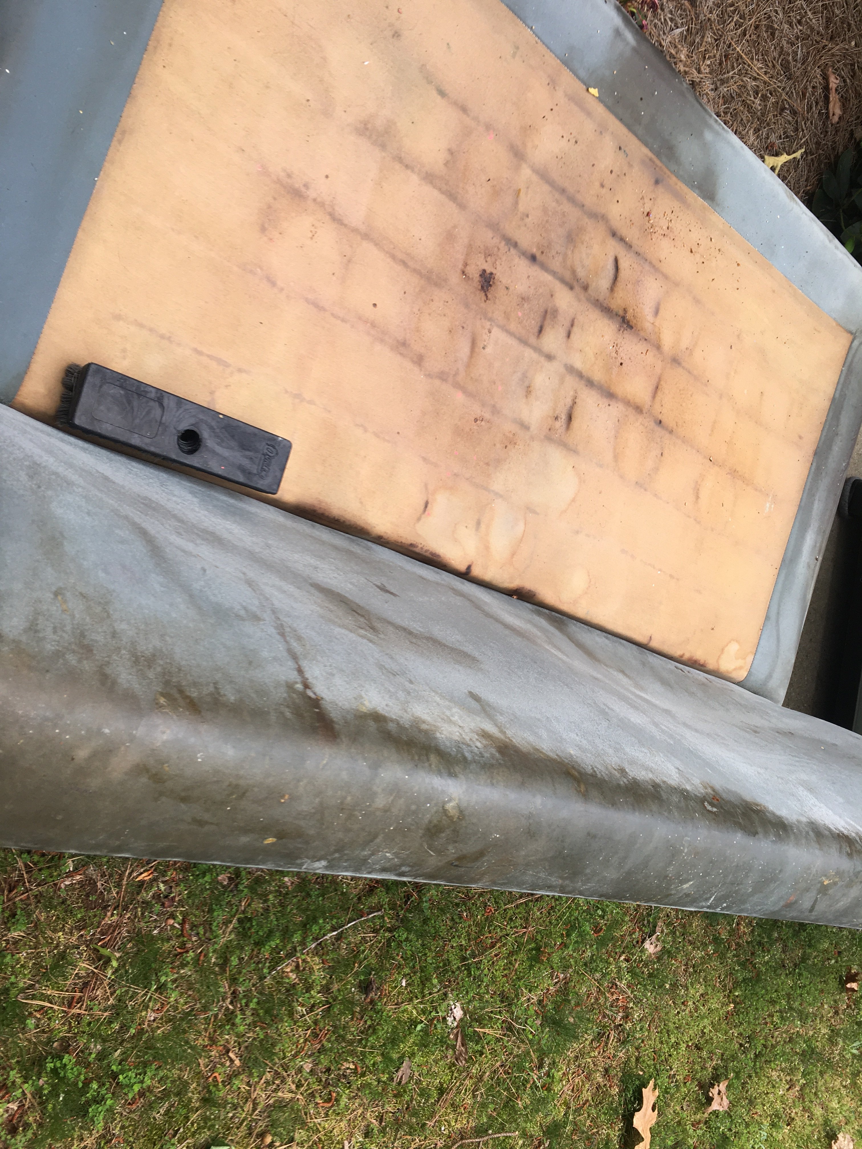 Second, the recliner, I thought was some sort of vinyl, was fabric. It was so caked in food, urine, and the head rest was so crunchy, you could knock on it.