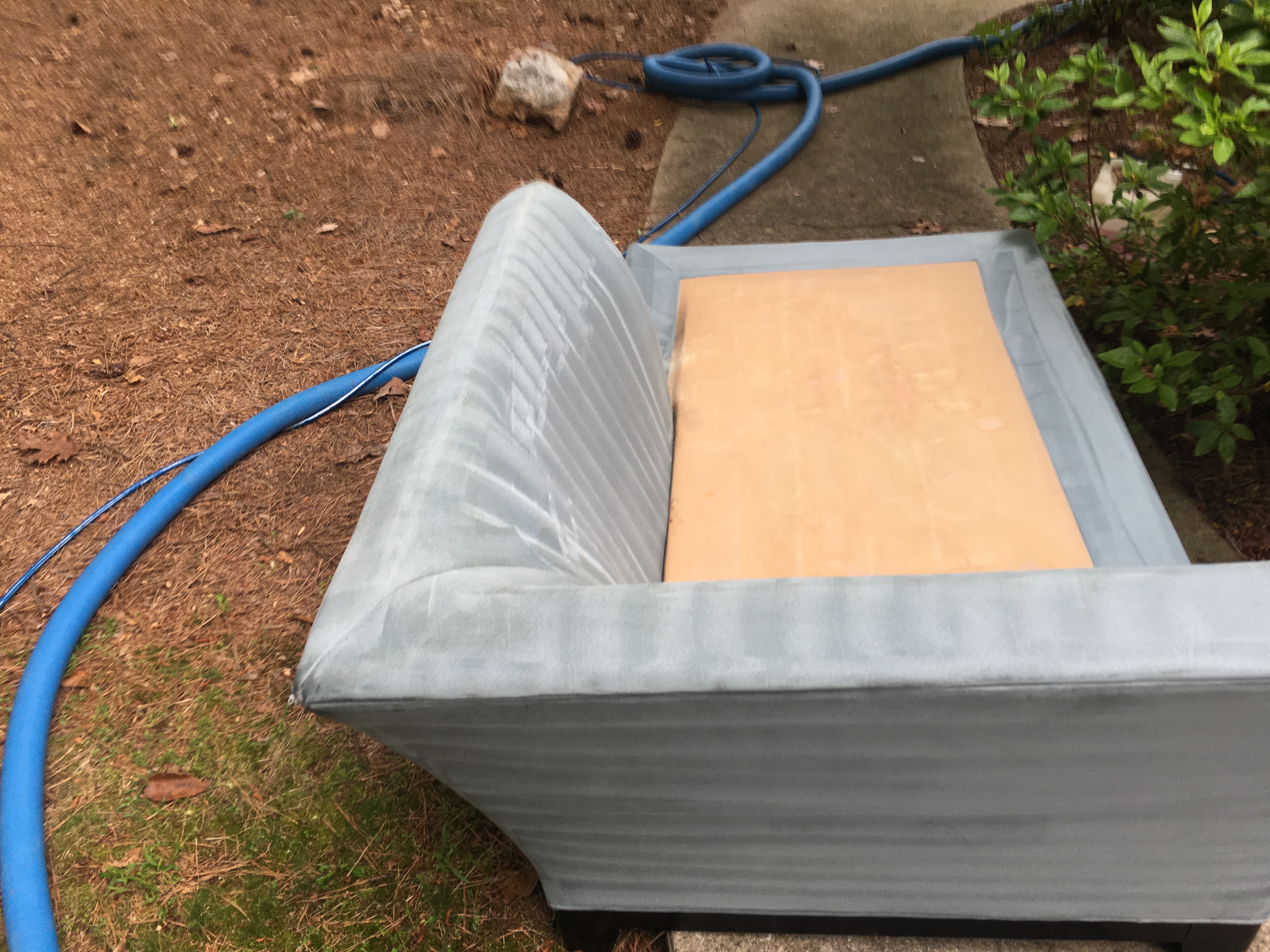 When there’s more oils, you need more surfactants. And when more surfactants are needed, you need more water to allow the surfactants to work. Notice the couch I cleaned here was moved out in their yard for that reason