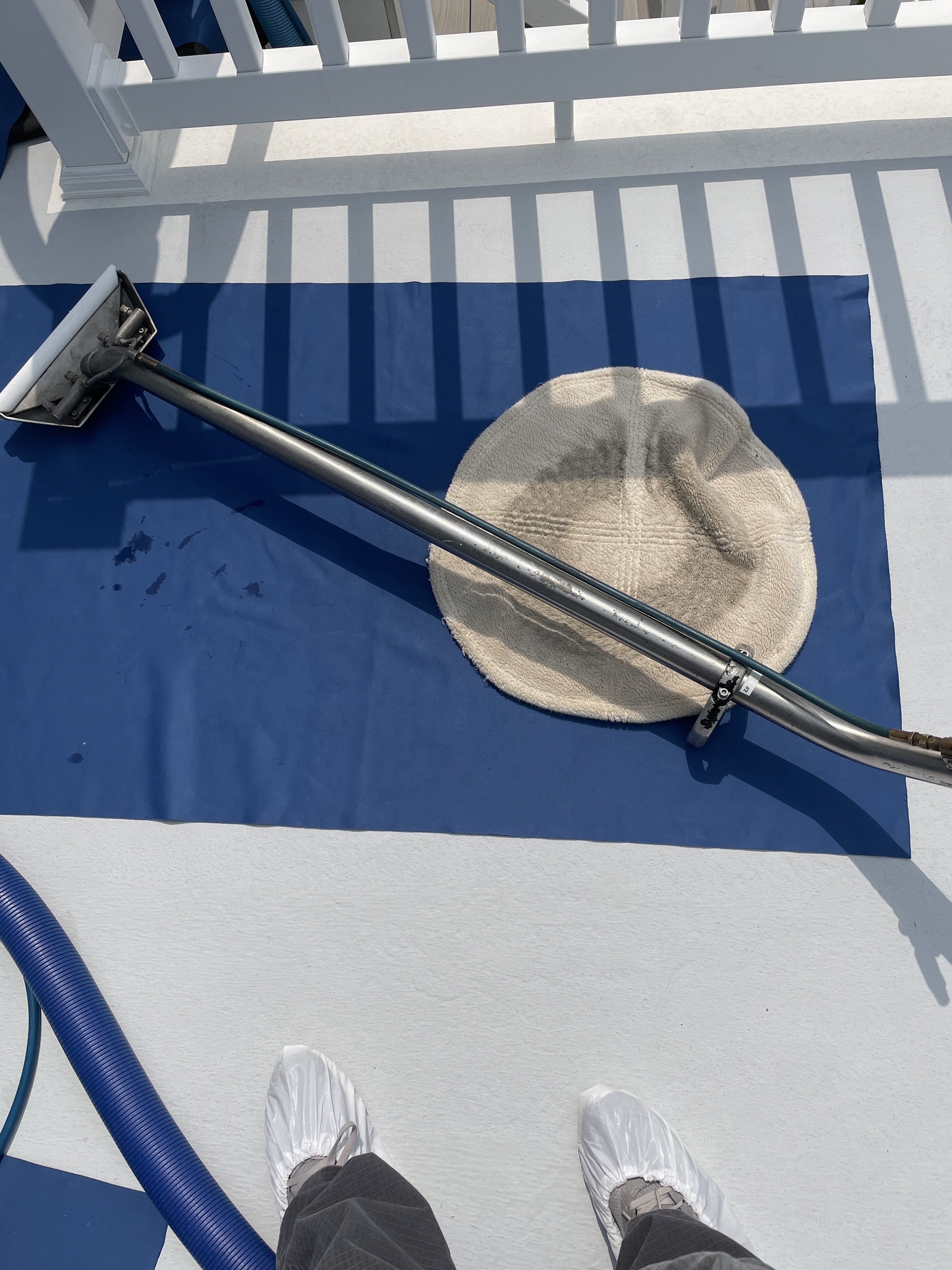 I did not do a good job padding, because I was set up for HWE already. I did this as a demo to show how I could put a band aid on it for the immediate time. I only sprayed a few ounces of Pad Cap Pro, NO dwell time, and was an instant no brainer for my customer t0 book a 30 minute appt in a month for $300. Win Win. She is so comforted now.