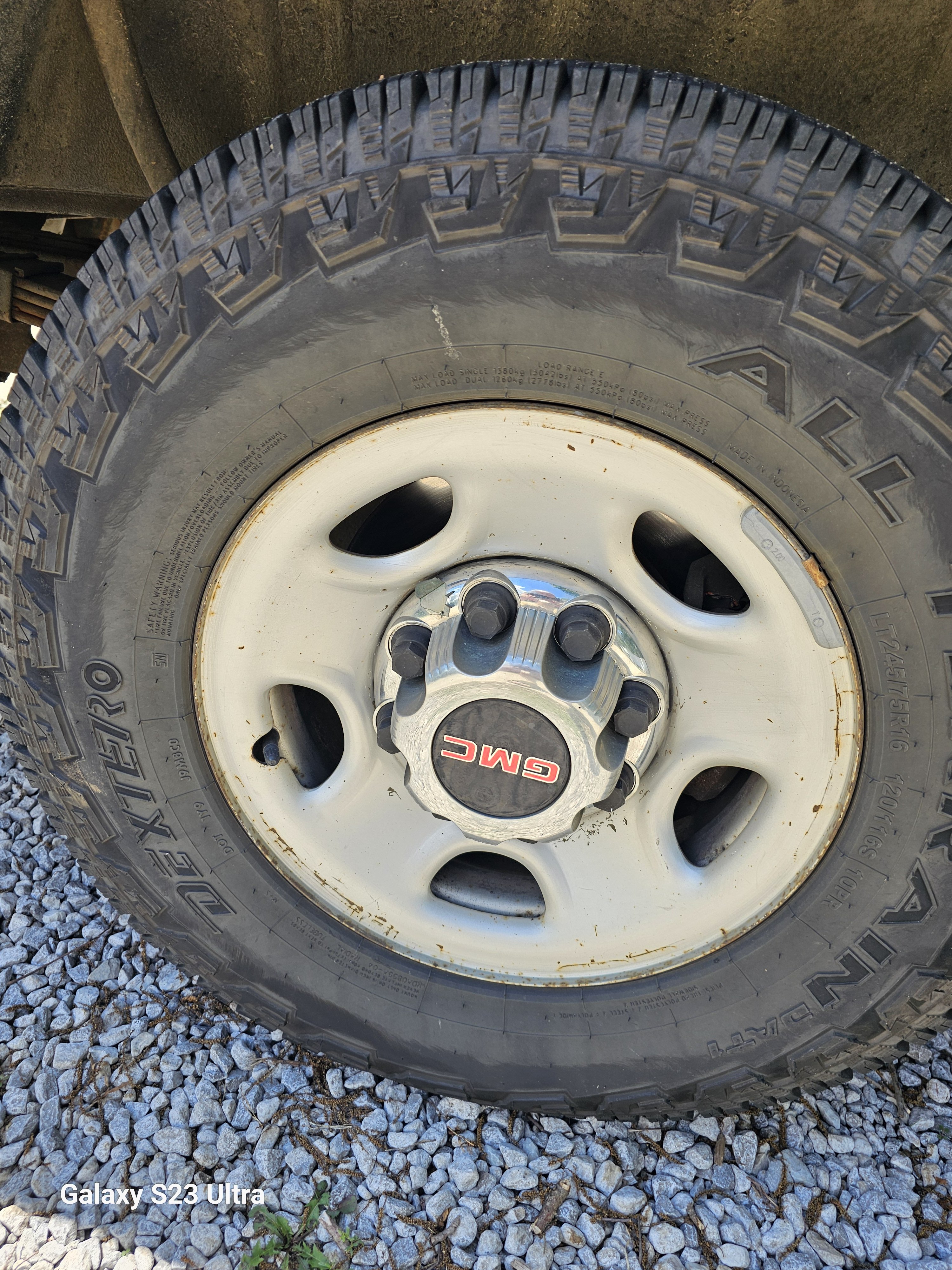 That’s one hunk of rubberAbout 5 year old tires or more. Not expensive neither 10 ply dextero.